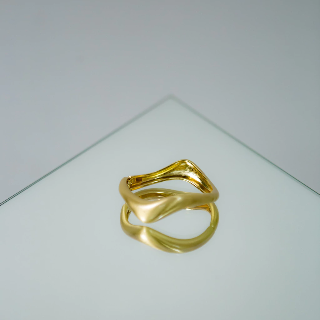 Eleve seu estilo com o Bracelete Acetinado Ondas, uma peça exclusiva com medida interna de 6cm que se encaixa perfeitamente ao pulso. Seu design em ondas traz uma textura única, realçada pelo elegante banho dourado acetinado que reflete luz com delicadeza.