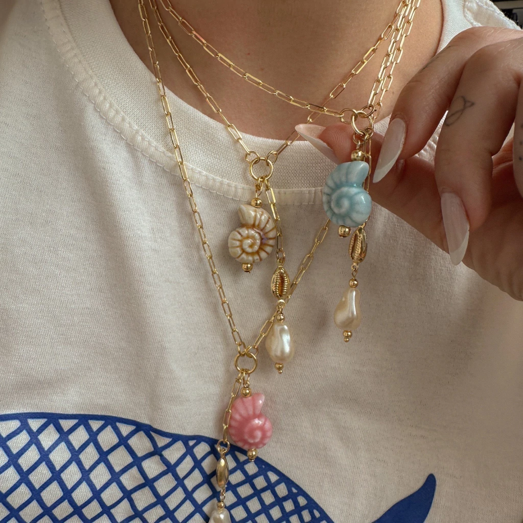 Pingente de concha: Um ícone da estética costeira, reinterpretado com design moderno e toque artístico. A concha simboliza feminilidade, proteção e conexão com a natureza.
