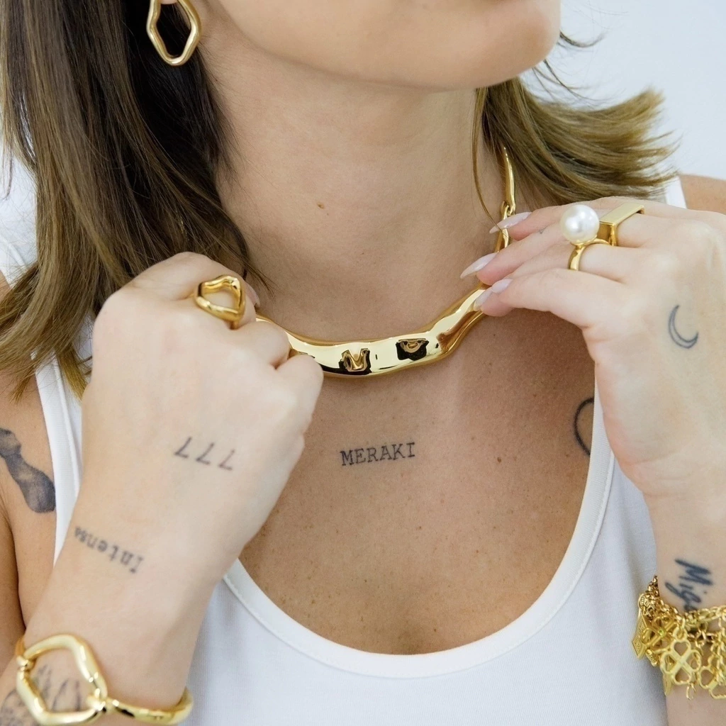 Seja a estrela do momento com o Colar Linhas Orgânicas Gabi, um acessório que exala charme e personalidade. Aproveite para combinar com o brinco, anel e gargantilha da mesma coleção e crie um conjunto exclusivo e harmonioso. Não perca a chance de ter essa obra de arte em suas mãos! ✨