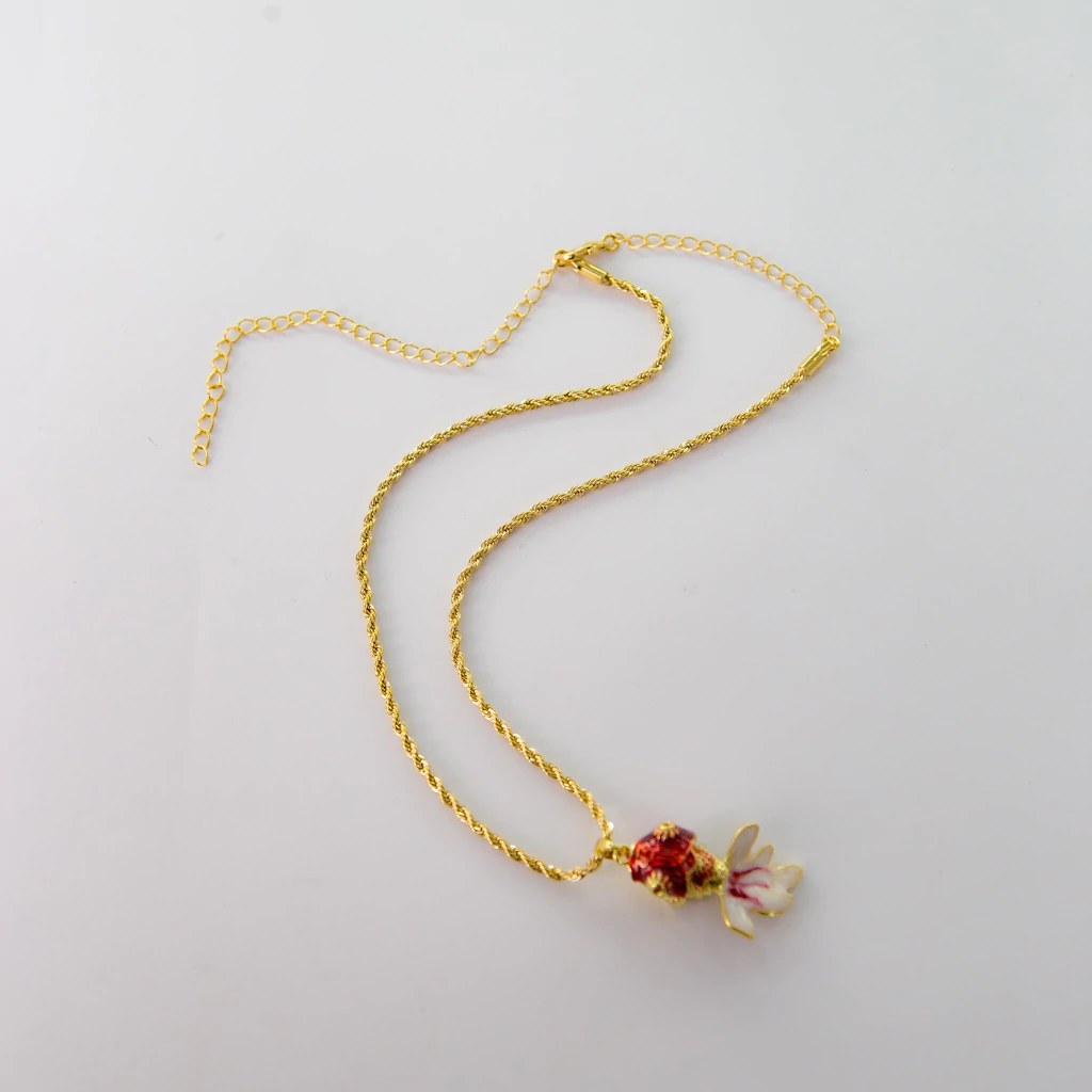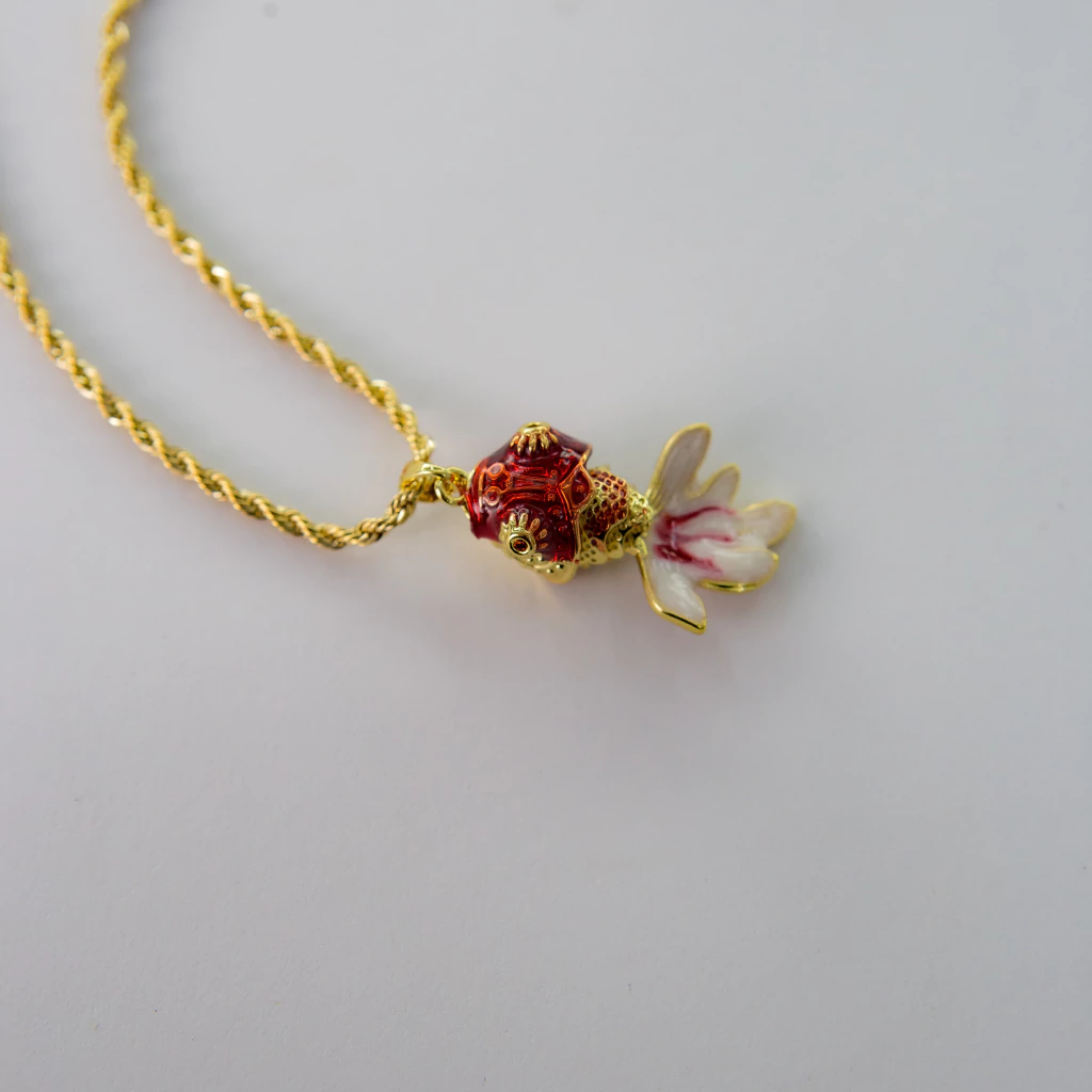 Com 35cm de comprimento e 10cm de extensor, o Colar Peixinho Vermelho é uma joia delicada e divertida que traz o frescor das águas tropicais para o styling urbano. Seu pingente em forma de peixinho, vibrante e cheio de personalidade, é banhado a ouro com verniz italiano premium, garantindo brilho intenso e acabamento impecável. O toque hipoalergênico oferece conforto absoluto para uso diário.