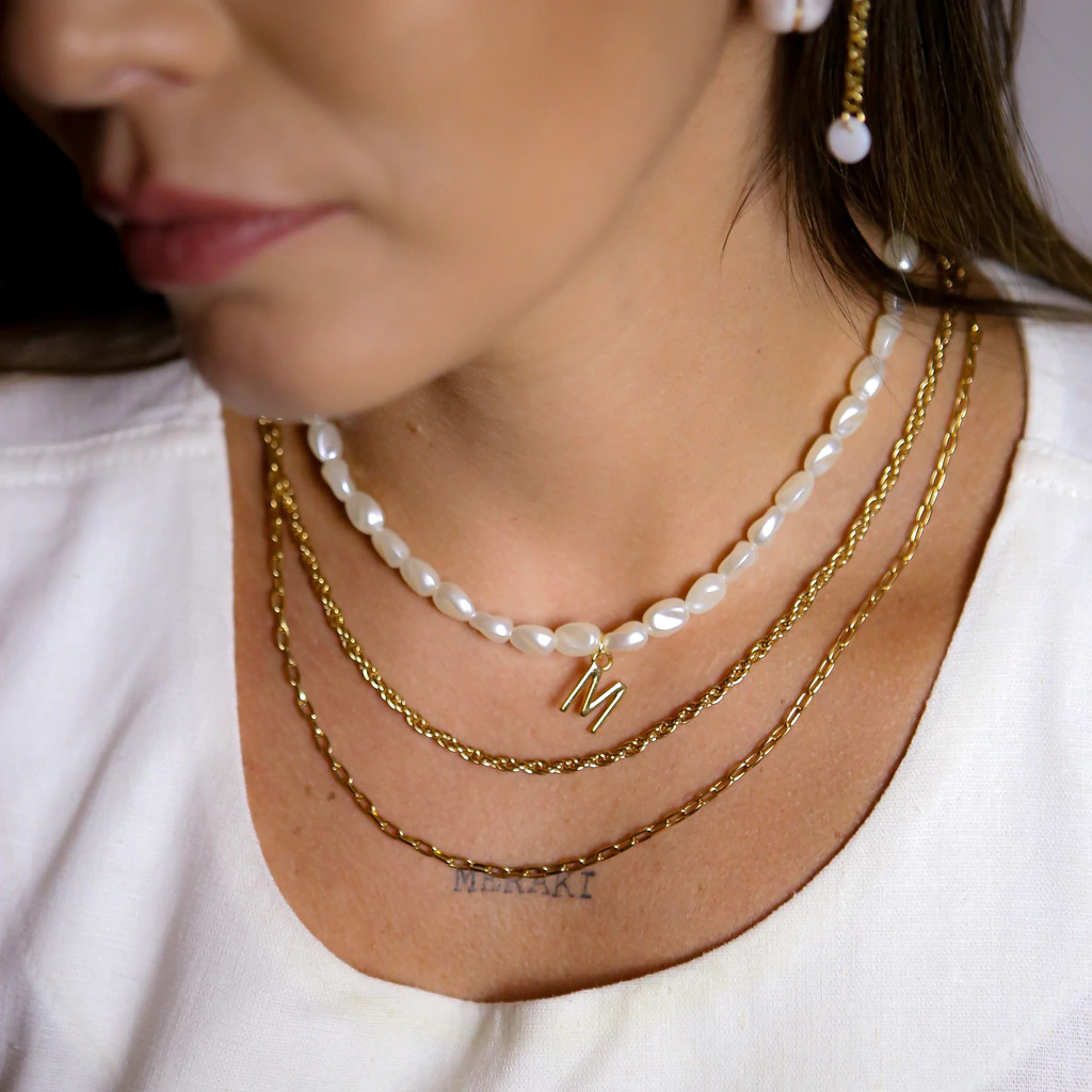 ✨ Características Especiais: - Mini pérolas delicadas que adicionam um charme especial. - Inicial personalizada para um toque único e exclusivo. - Banhos variados, oferecendo versatilidade para combinar com seu estilo.