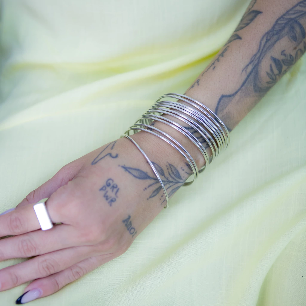Inspirado na fluidez das formas orgânicas, o Bracelete Fluir é uma ode ao design sensorial. Com curvas suaves e acabamento espelhado, ele desliza pelo pulso como uma extensão natural do estilo. Disponível em banho de ouro ou prata premium, recebe o toque final do verniz italiano, que garante brilho intenso e durabilidade impecável.