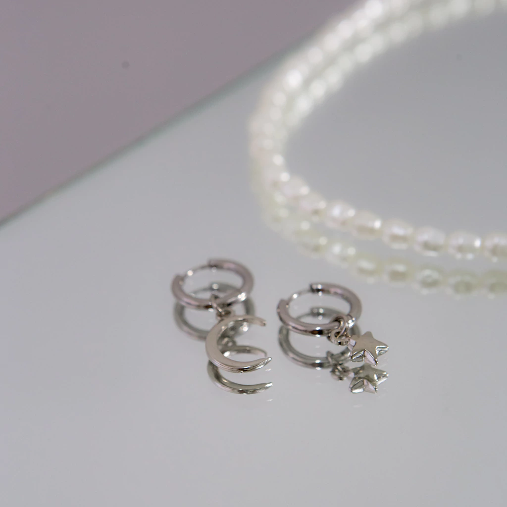 ✨ Presente incluso: argolinha de aço inox com pingentes de lua e estrela, combinando com o colar.