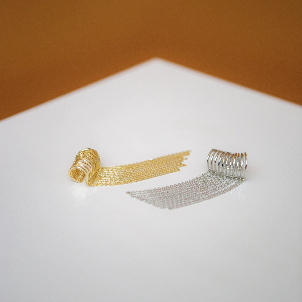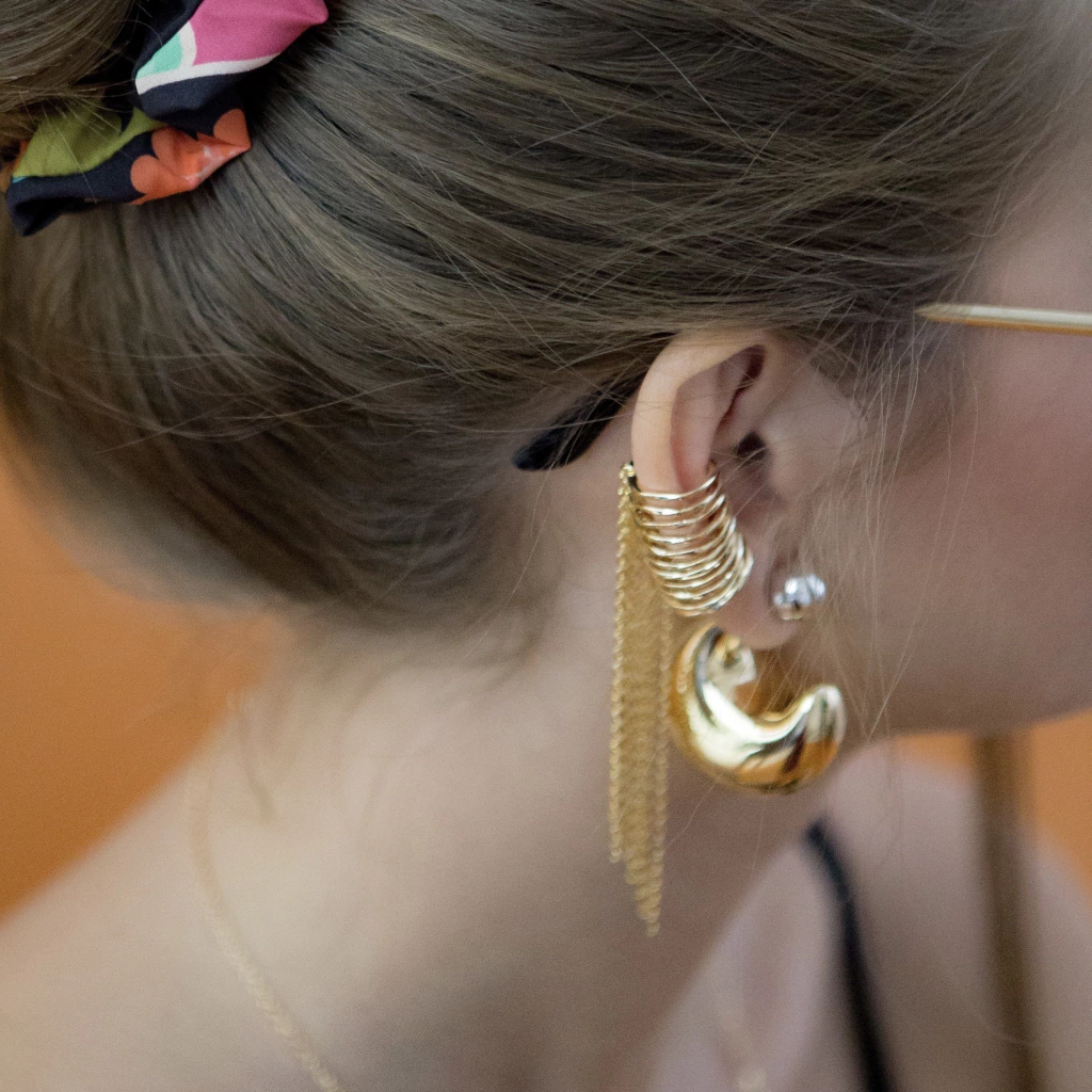 Adicione um toque de glamour ao seu visual com o Piercing Fake Correntes Prisma! Este acessório é perfeito para quem deseja um estilo ousado, sem a necessidade de furar as orelhas.