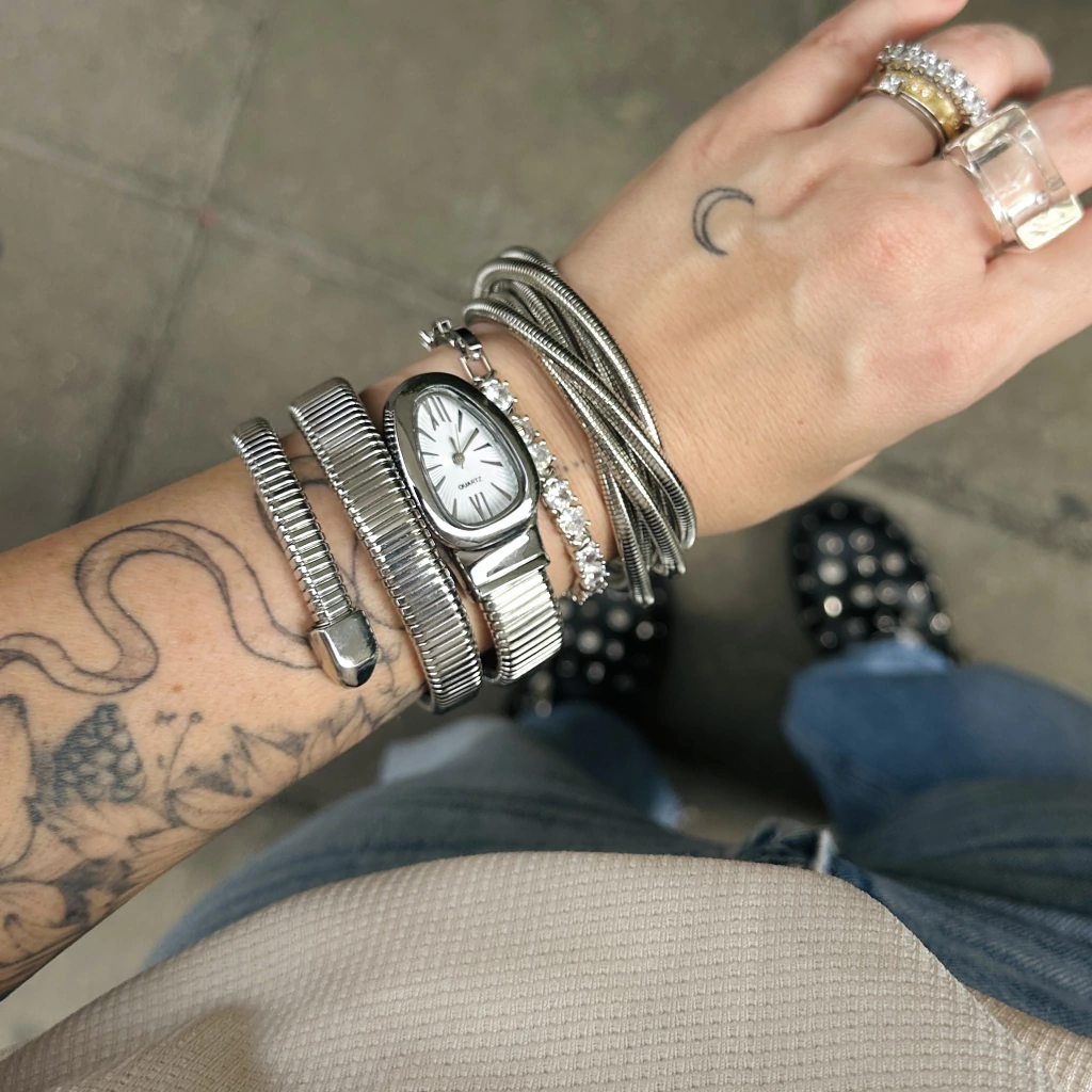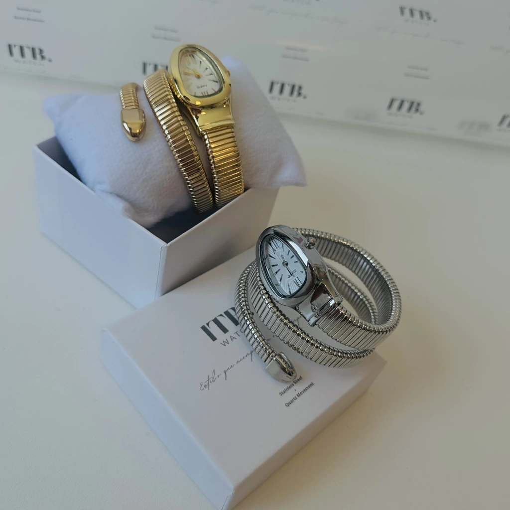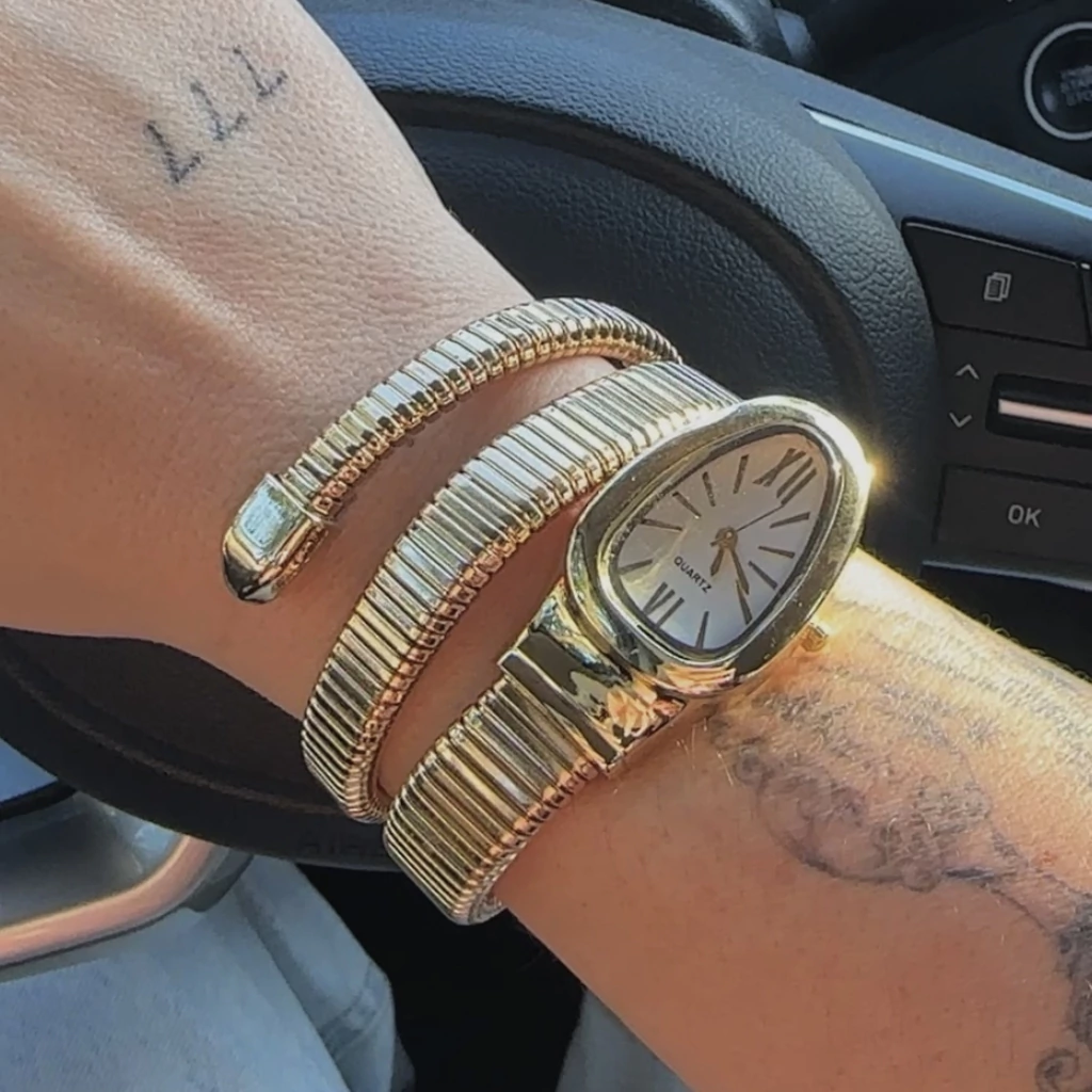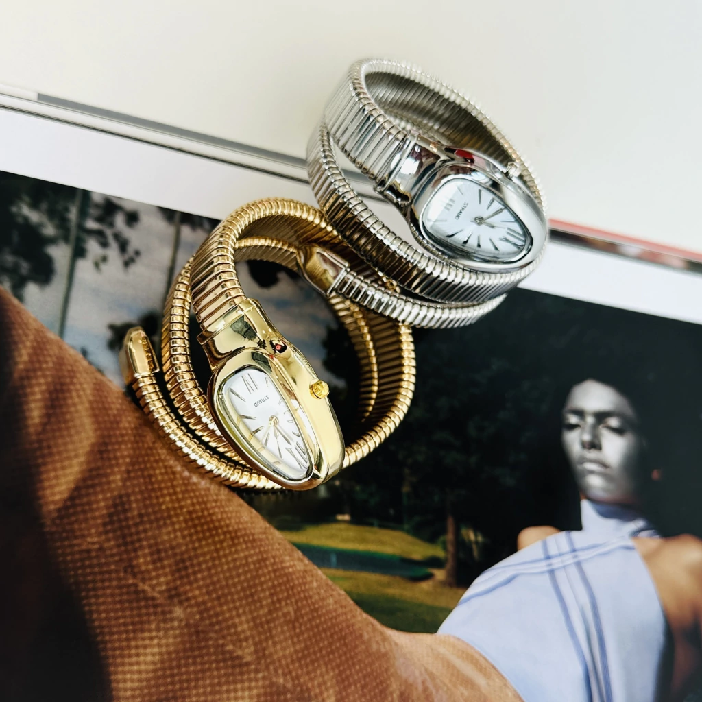 O Relógio Snake é uma peça ousada e sofisticada, criada para quem deseja transformar o tempo em estilo. Seu design exclusivo envolve o punho com três voltas elegantes, lembrando o movimento sinuoso de uma cobra, símbolo de poder e mistério.